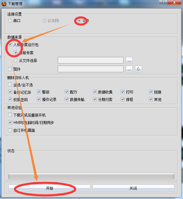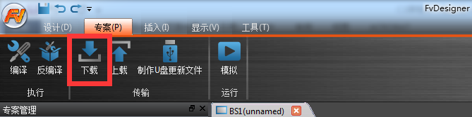 2.打開FvDesigner 軟件,編譯無誤后,點擊頂部狀態欄專案>>下載,進入管理界面如下圖2,按照圖3所示的進行操作下載。