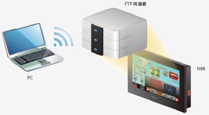 3.FTP功能。C3/P5系列觸摸屏可以開啟FTP功能,開啟后,您可以通過網(wǎng)絡直接訪問到觸摸屏內部存儲資料(數(shù)據(jù)記錄,報警記錄等信息),無需到現(xiàn)場將人機界面的數(shù)據(jù)導入導出。