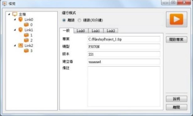 離線模擬,不須連線 永宏PLC 與 永宏觸摸屏HMI 設備,可以直接操