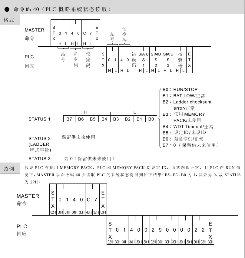 FATEK 臺灣永宏P(guān)LC編程指令之命令碼40--PLC 概略系統(tǒng)狀態(tài)讀取
