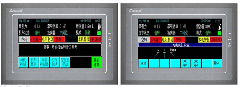 觸摸屏采用深圳顯控自動化的Samkoon SK-070AS觸摸屏,它兩個COM口,其中一個是RS232口,另一個即可當做RS232,又可以用作 RS485來通訊。同時還帶有兩個USB口,一個10M/100M自適應RJ 45以太網接口。此縱橫科技的觸摸屏是一套以嵌入式低功耗CPU為核心的高性能嵌入式人機界面,采用7英寸高亮度TFT液晶顯示屏,四線電阻式觸摸屏,同時還預裝微軟嵌入式實時多任務操作系統WinCE和免費捆綁HMIBuilder嵌入版組態軟件無線點。