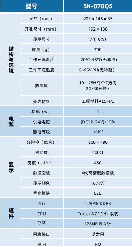 SK-070QS 顯控人機(jī)界面 顯控觸摸屏