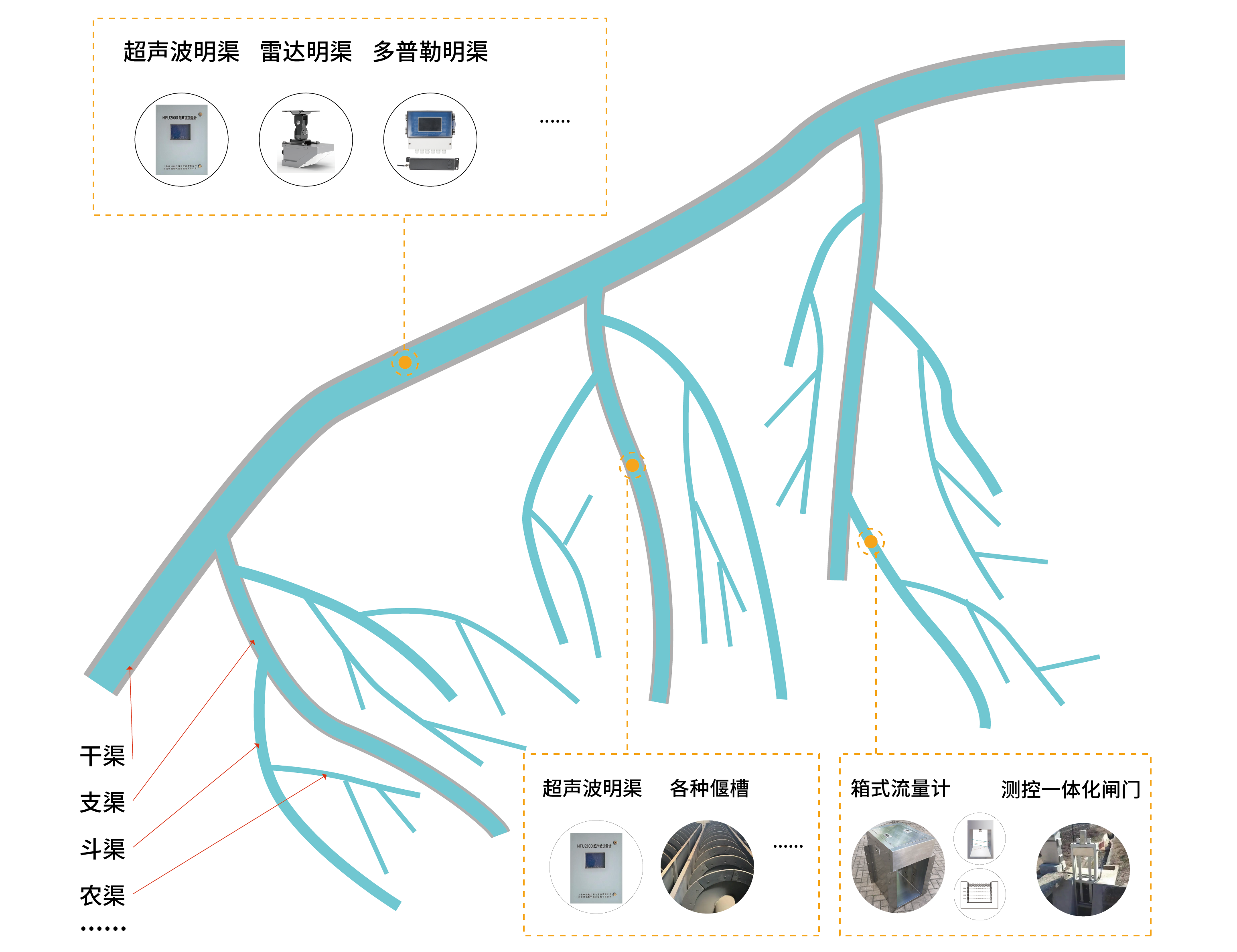 明渠是農業灌溉中的重要設施,準確測量并控制渠道的輸水流量,是合理調度水資源,征收水費的重要環節。 針對灌區內的干渠、支渠、斗渠等場景,麥克傳感提供了明渠流量監測、物聯網遠程傳輸、太陽能供電等整體解決方案。